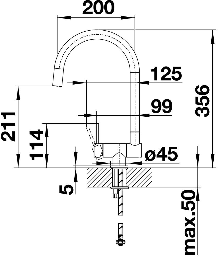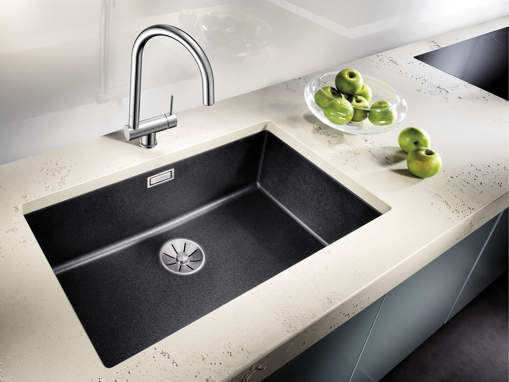 Кухонный смеситель Blanco Coressa-F оснащен удобным складным механизмом. Всего одним движением его можно сложить и за считанные секунды и опустить в чашу мойки. Это позволяет быстро и широко открывать окно, так как носик полностью погружается в чашу. В сложенном состоянии конструкция смесителя имеет высоту всего 6,5 см. Звуковой щелчок на верхнем и нижнем упорах является верным признаком того, что клапан снова находится в полностью функциональном положении.